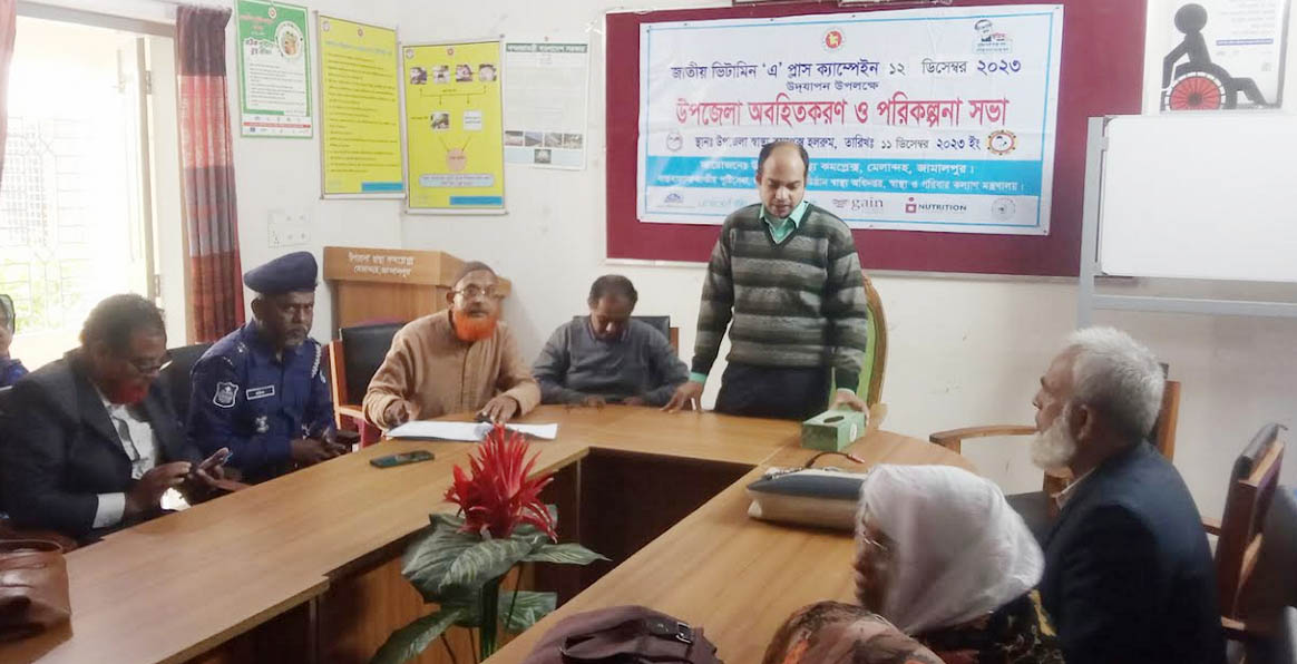 জামালপুরের জাতীয় ভিটামিন এ প্লাস ক্যাম্পেইন ১২ ডিসেম্বর উদযাপন উপলক্ষে মেলান্দহ উপজেলা অবহিতকরণ ও পরিকল্পনা শীর্ষক আলোচনা সভা অনুষ্ঠিত হয়েছে ।