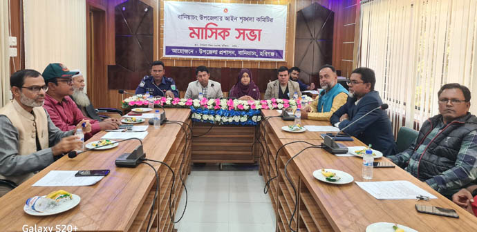 বানিয়াচংয়ে উপজেলা আইন-শৃঙ্খলা কমিটির মাসিক সভা অনুষ্ঠিত হয়েছে। রবিবার (৩১ ডিসেম্বর) সকাল সাড়ে ১০ ঘটিকায় বানিয়াচং উপজেলা পরিষদ সভাকক্ষে আয়োজিত সভায় সভাপতিত্ব করেন বানিয়াচং সহকারী কমিশনার (ভূমি) মোঃ সাইফুল ইসলাম।