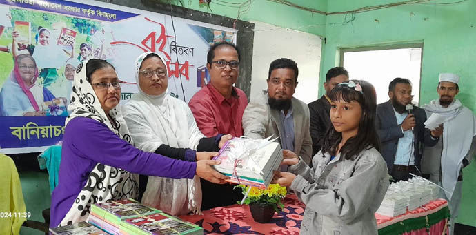 বানিয়াচং আদর্শ উচ্চ বিদ্যালয়ের শিক্ষার্থীদের মাঝে নতুন বই বিতরণ