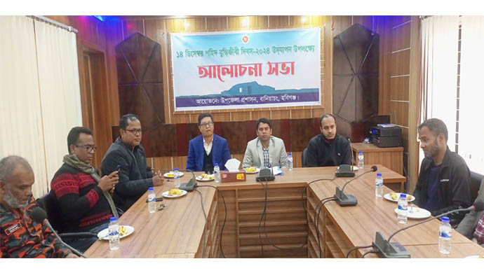 বানিয়াচংয়ে শহিদ বুদ্ধিজীবী দিবস-২০২৪ উদযাপন উপলক্ষে আলোচনা সভা অনুষ্ঠিত হয়েছে। শনিবার (১৪ ডিসেম্বর) সকাল ১১ ঘটিকায় বানিয়াচং উপজেলা প্রশাসনের আয়োজনে আয়োজিত আলোচনা সভায় সভাপতিত্ব করেন বানিয়াচং উপজেলা নির্বাহী অফিসার (ভারপ্রাপ্ত) মোঃ সাইফুল ইসলাম।