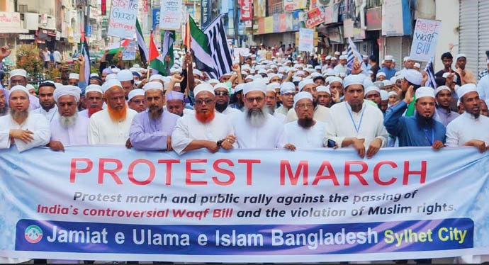 জমিয়তে উলামায়ে ইসলাম সিলেট মহানগর এর নেতৃবৃন্দ বলেছেন, ব্রাহ্মণ্যবাদী ভারত ধর্মনিরপেক্ষতার দোহাই দিয়ে প্রতিনিয়ত মুসলমানদের উপর জুলুম নির্যাতন মুসলমানদের বাড়ি ঘর, মসজিদ মাদ্রাসা বন্ধ করার ষড়যন্ত্রে লিপ্ত,ইতিমধ্যে ওয়াকফ সম্পত্তি বাতিলের অজুহাতে ইতিমধ্যে ভারতের প্রায় ১৮০টি মাদ্রাসা বন্ধ করে দেওয়া হয়েছে,অবিলম্বে এই মসজিদ-মাদ্রাসা খুলে দেওয়া হোক এবং সম্পত্তি হাইকোর্ট যে বাতিল করেছে অবিলম্বে এই আইন প্রত্যাহার করতে হবে এবং মুসলমানদের উপর জুলুম নির্যাতনের কারণে তাদের ক্ষতিপূরণ এবং ভবিষ্যতে মুসলমানদের উপর গণহত্যা বন্ধ করার প্রতিশ্রুতি দিতে হবে।
