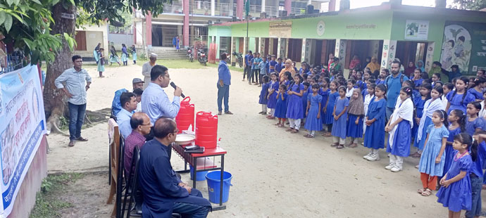 আলোচনা সভা শেষে স্কুল শিক্ষার্থী, নারী-পুরুষ ও শিশুদের মধ্যে স্বাস্থ্য সচেতনতা বৃদ্ধির লক্ষ্যে প্রদর্শনী ও “হাত ধোয়া শেখা” অনুশীলন কর্মসূচি অনুষ্ঠিত হয়।