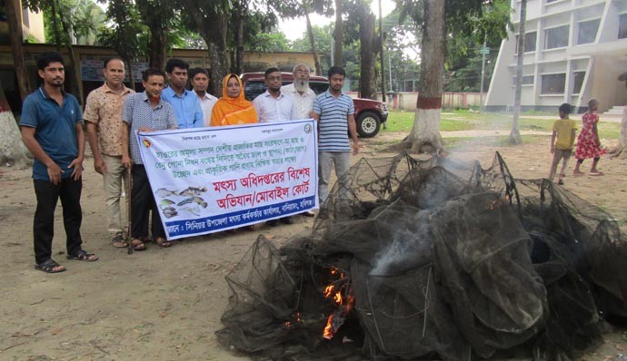 বানিয়াচংয়ে মৎস্য অধিদপ্তরের অভিযানে ৪০ হাজার মিটার জাল জব্দ