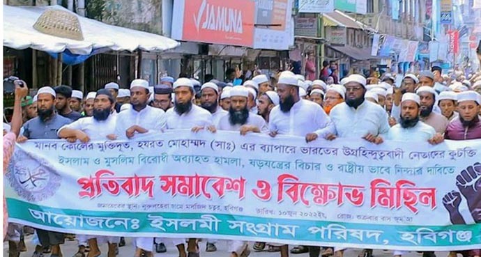 মহানবীকে নিয়ে কটুক্তির প্রতিবাদে নবীগঞ্জে বিক্ষোভ মিছিল ও সমাবেশ অনুষ্ঠিত