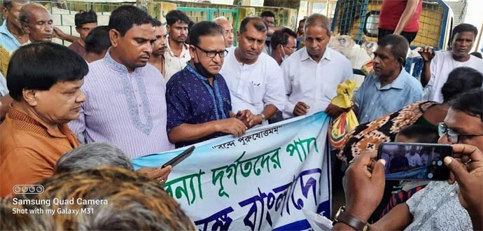 নবীগঞ্জের বন্যার্তদের পাশে বাংলাদেশ সৎসঙ্গের কেন্দ্রীয় নের্তৃবৃন্দ