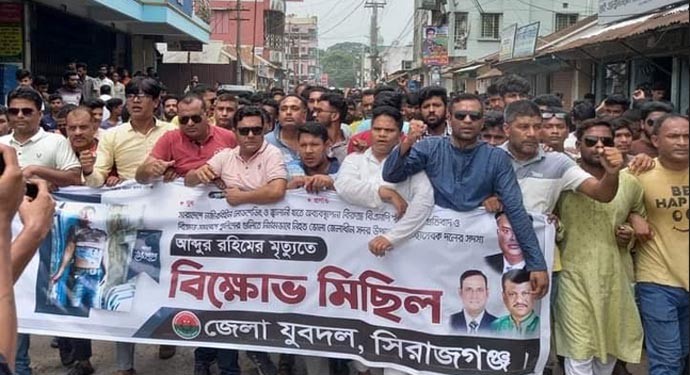 সিরাজগঞ্জে ভোলার পুলিশের গুলিতে স্বেচ্ছাসেবক দল নেতা রহিম হত্যার প্রতিবাদে বিক্ষোভ