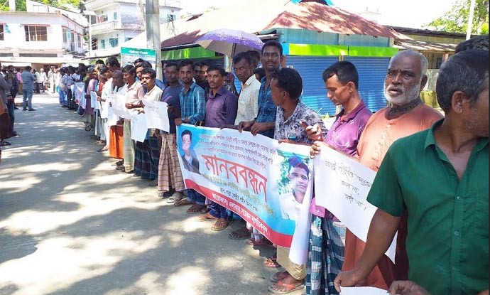 মানববন্ধনে নরেন্দ্র দাসের পরিচালনায় ও রায়ধন দাসের সভাপতিত্বে বক্তব্য রাখেন, অসিম দাস, গিরীশ দাস, জীবন দাস, রবীন্দ্র দাস, কালাবাসী দাস, সুশংকর দাস, ঝন্টু দাস, জয়মঙ্গল দাস, প্রদীপ দাস, প্রমোদ দাস প্রমুখ।