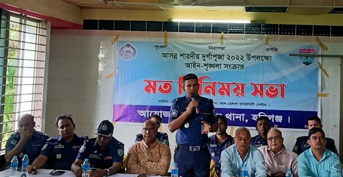 নবীগঞ্জে দূর্গাপুজাউপলক্ষে আইনশৃংখলা বিষয়ক মতবিনিময় সভা
