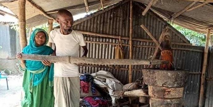 ভাঙ্গা ঘরে সন্তানদের নিয়ে মানবেতর জীবন যাপন করছেন তারা। দুই সন্তান বড় হয়ে বিয়ে করে আলাদা সংসার পেতেছে। বাবা মায়ের ঘানি ভাঙ্গানো আয়ে তারা বড় হলেও এখন তারা তাদের দায়িত্ব নিচ্ছে না। বাধ্য হয়ে এই দম্পতি ঘানির বোঝা টেনে চলেছে নীরবে। কবে তারা এই বোঝা থেকে মুক্ত হবে তা জানা নেই তাদের। একটি ঝুপড়ি ঘরে ঘানির চাকায় কয়েকটি পাথর বসিয়ে ঘুরাচ্ছে আবুল কালাম আজাদ ও তার স্ত্রী আসমা খাতুন।