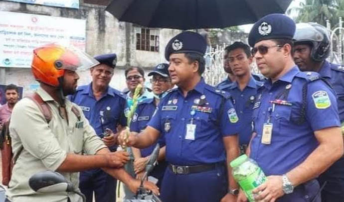 কতিপয় মোটরসাইকেল চালকের মাথায় হেলমেট না থাকায় তাদেরকে জরিমানা না করে সতর্ক করা হয়েছে। এছাড়া চালক ও আরোহীদের হেলমেট পড়া এবং ট্রাফিক আইন মেনে চলার বিষয়ে নির্দেশনা দেয়া হয়েছে।